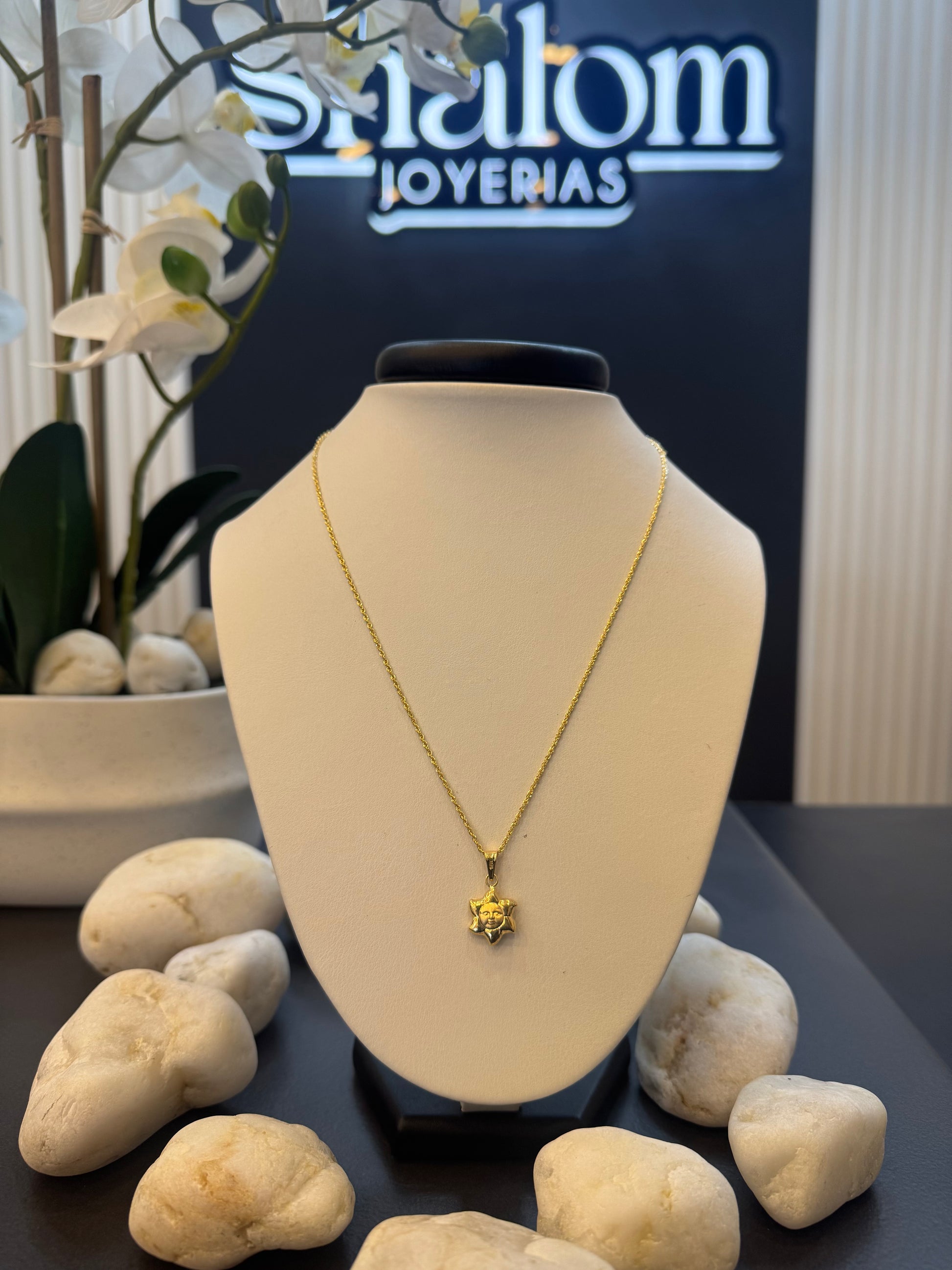 Envuelve tu cuello en lujo con nuestro fino Cordón San Francisco. Fabricado en 18 quilates, cuenta con 44cm de largo, acompañado de un dije de sol radiante. Resalta tu elegancia con este accesorio exclusivo.