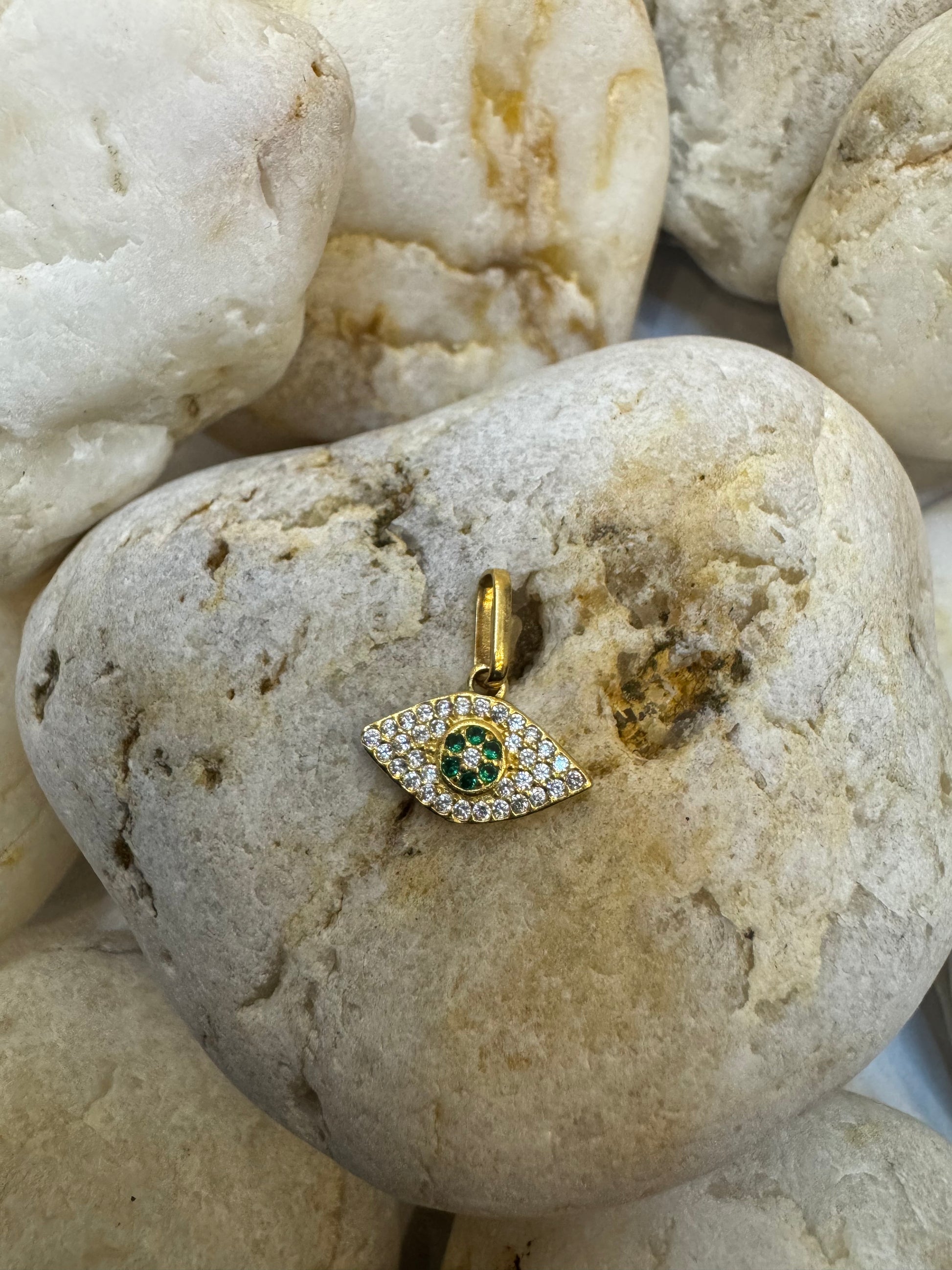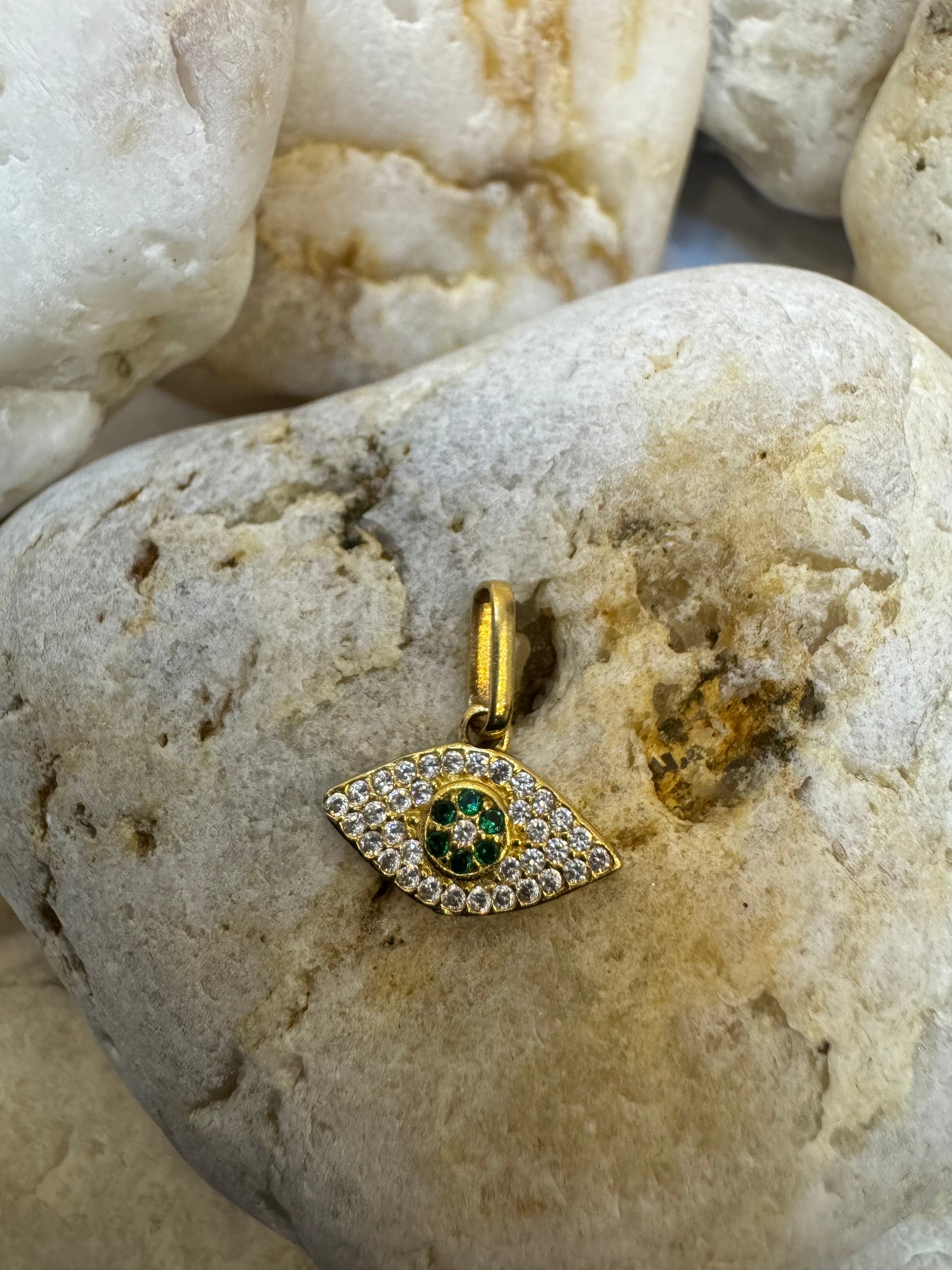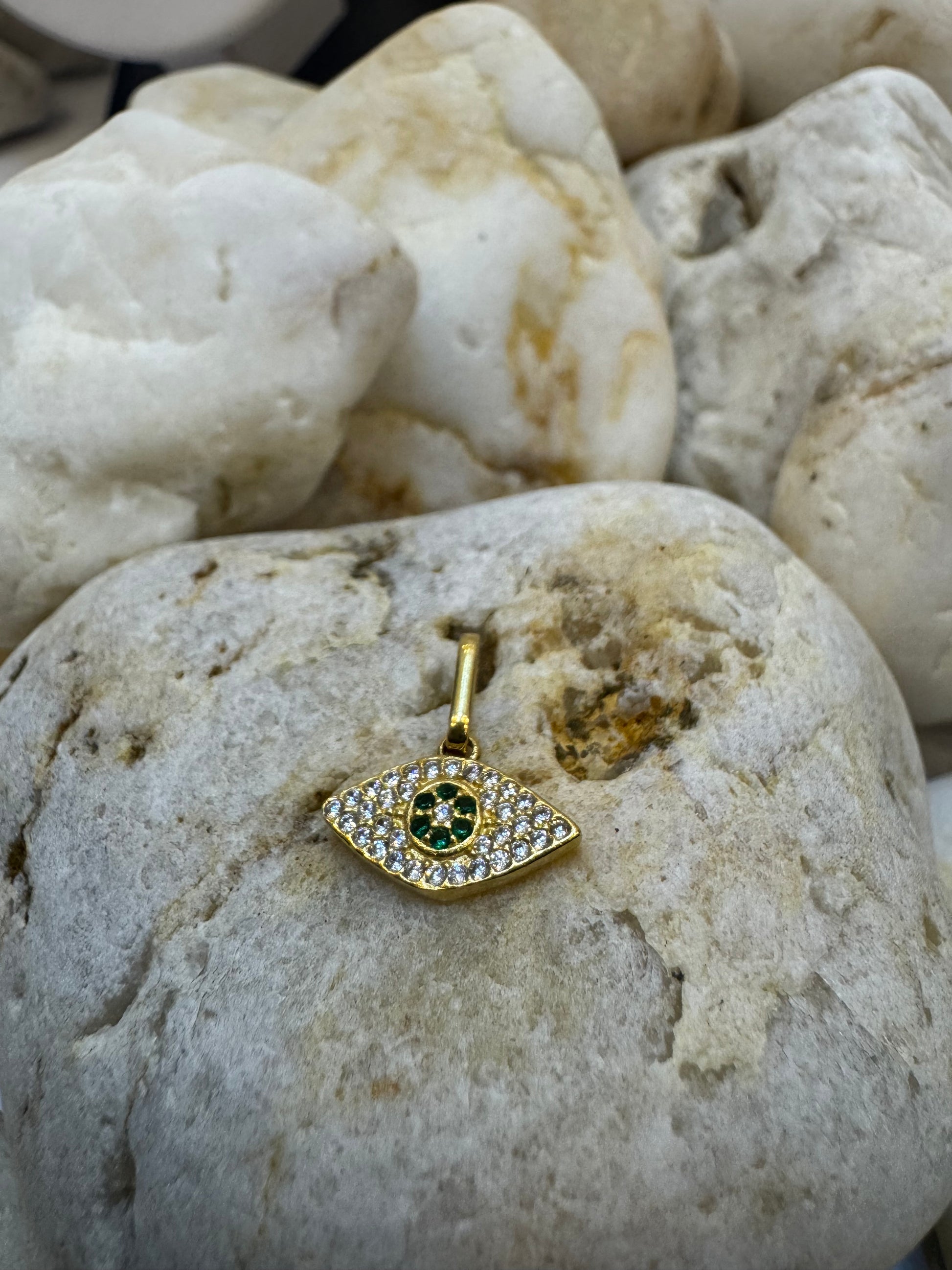 La belleza y el poder del amuleto más emblemático con nuestro exclusivo dije de ojo turco, decorado con brillantes circones que añaden un toque de elegancia y brillo. Este dije no solo es una joya impresionante, sino también un símbolo de protección y buena suerte.