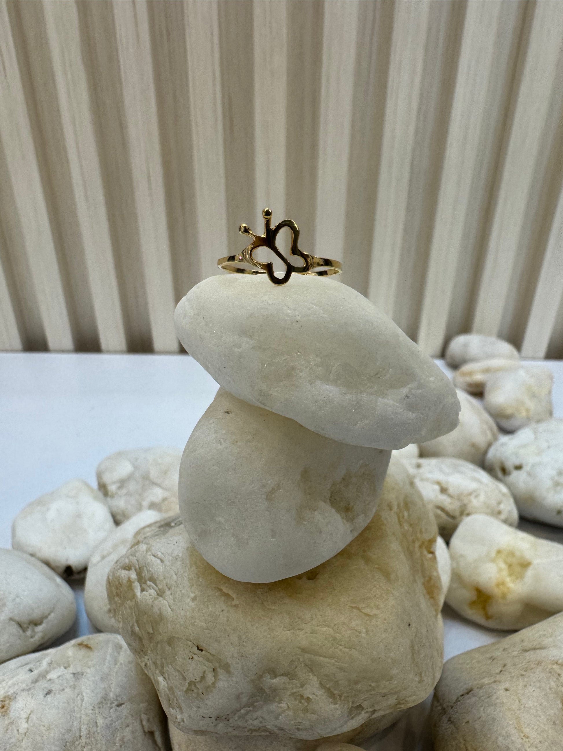 Farfalla dorata, es un anillo de oro 18 quilates con una sublime silueta de mariposa. Acentúa tu estilo con esta pieza elegante y delicada.