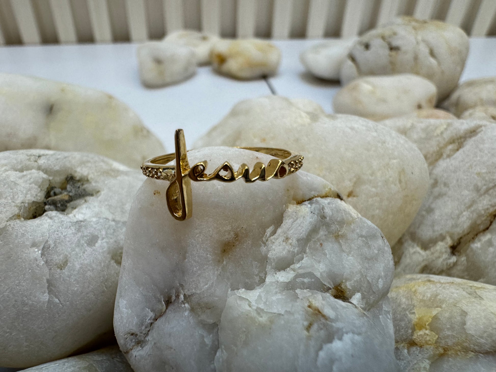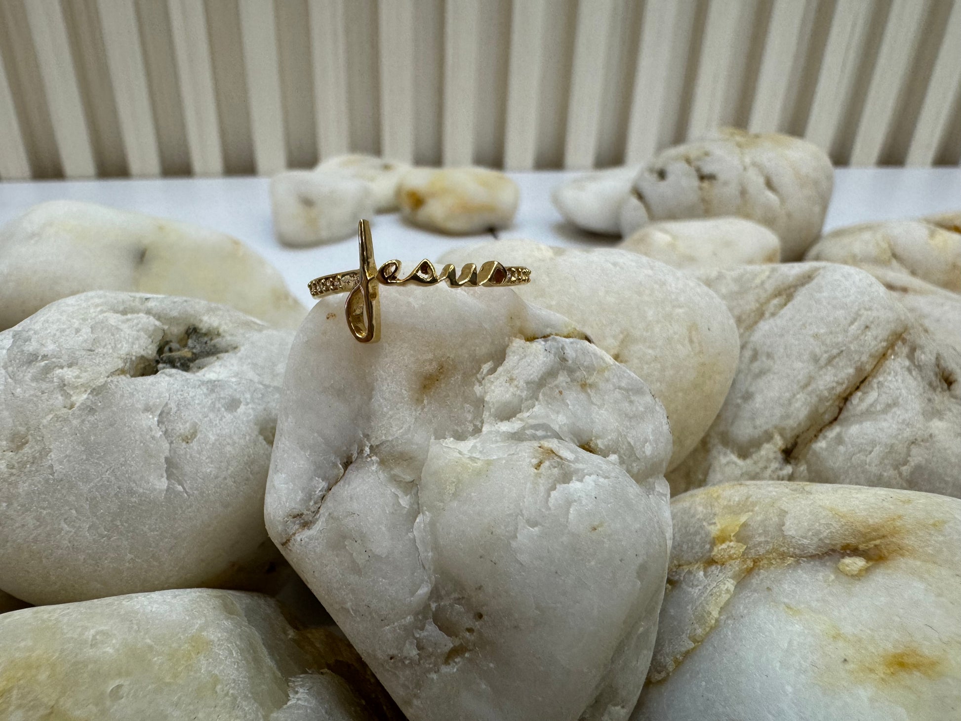Este anillo con el nombre de Jesús es perfecto para aquellos que desean demostrar su fe y llevar el nombre de nuestro creador. Hecho de materiales de alta calidad, este accesorio puede ser un recordatorio diario de la presencia de Dios en nuestras vidas.