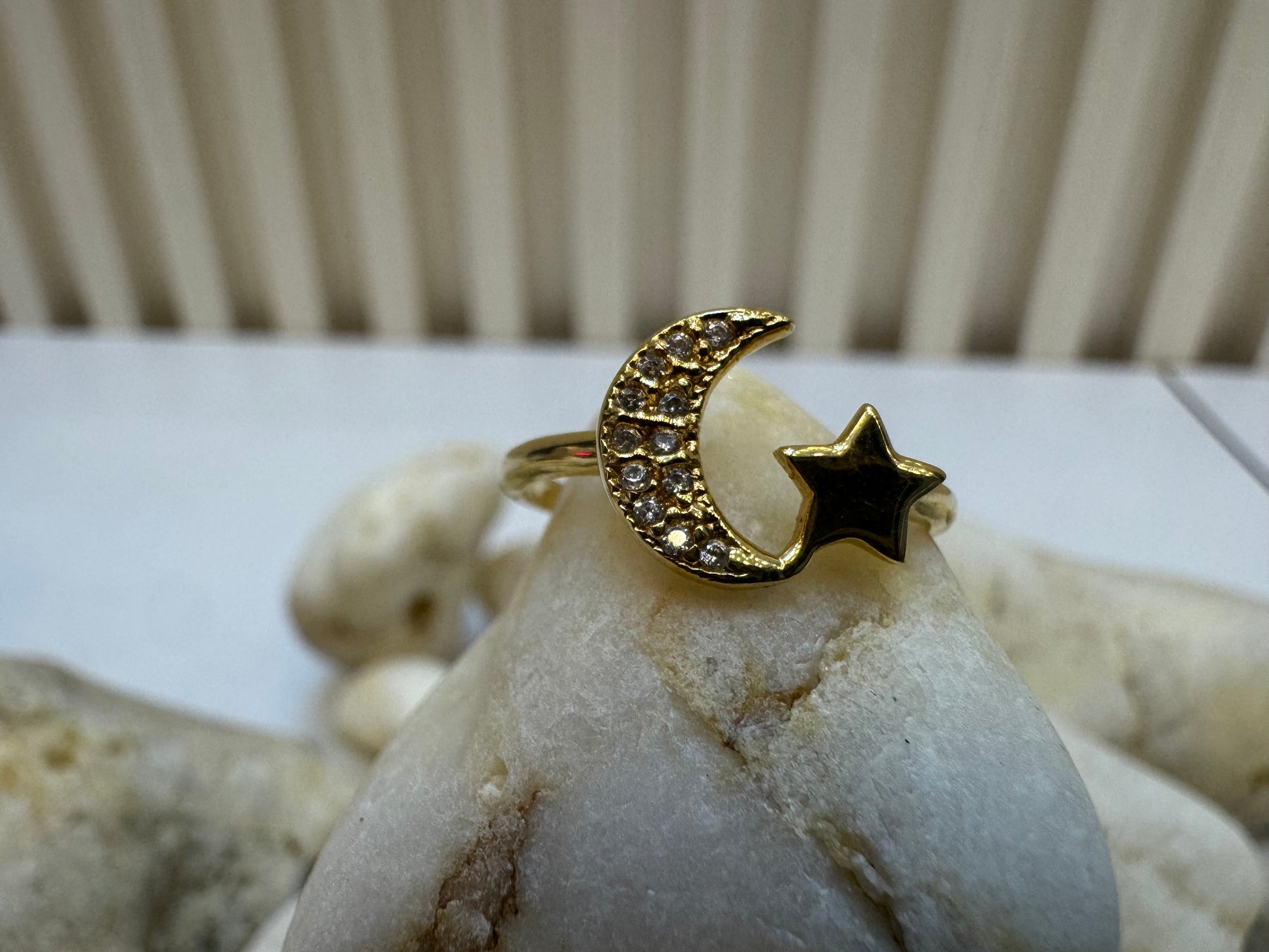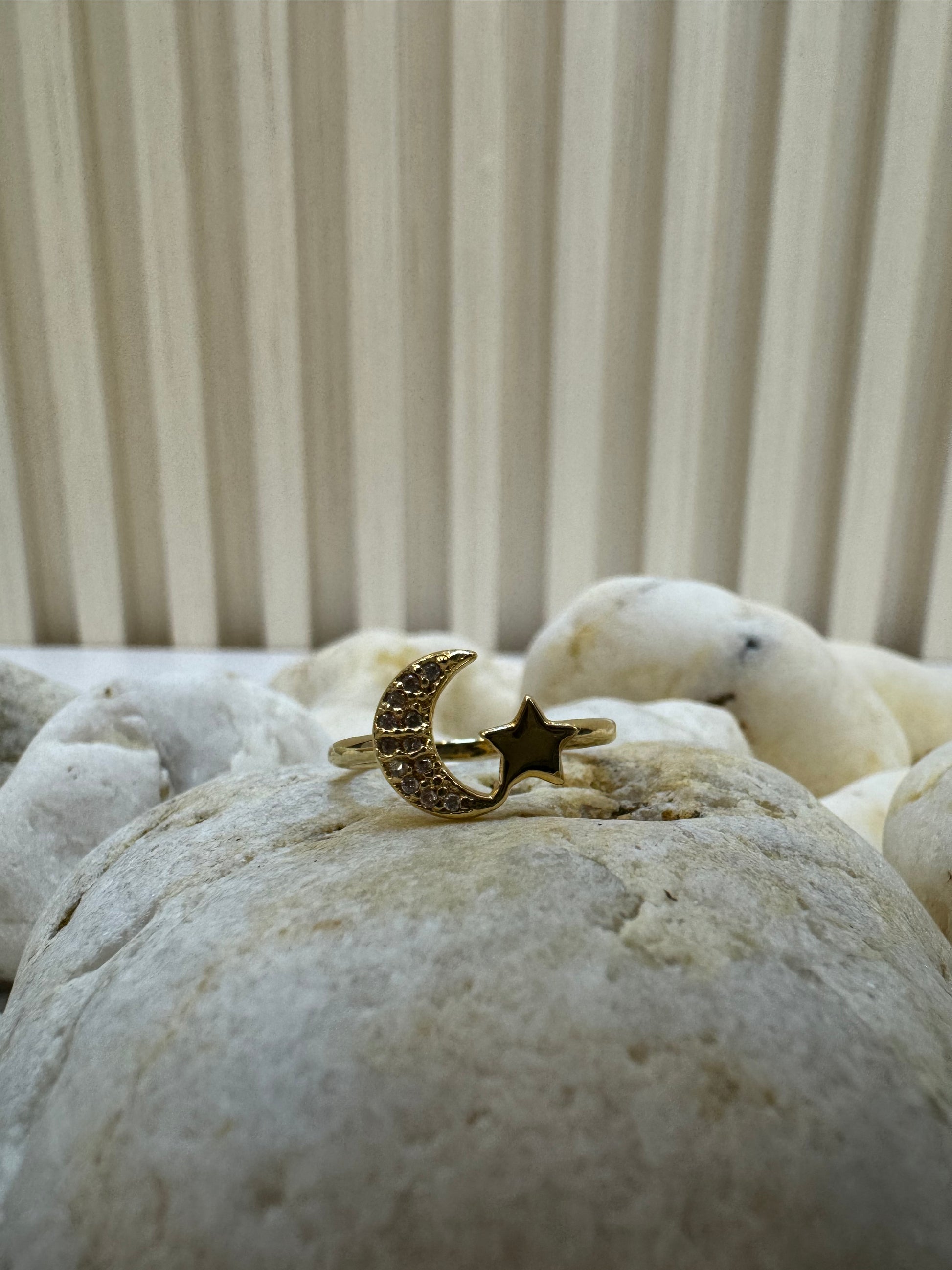 La Luce notturna es un hermoso anillo con una luna y una estrella, que iluminará tus noches con su brillo. Fabricado con materiales de alta calidad, su diseño te transportará al cielo estrellado. Añade un toque mágico a tu conjunto y destaca entre la multitud.