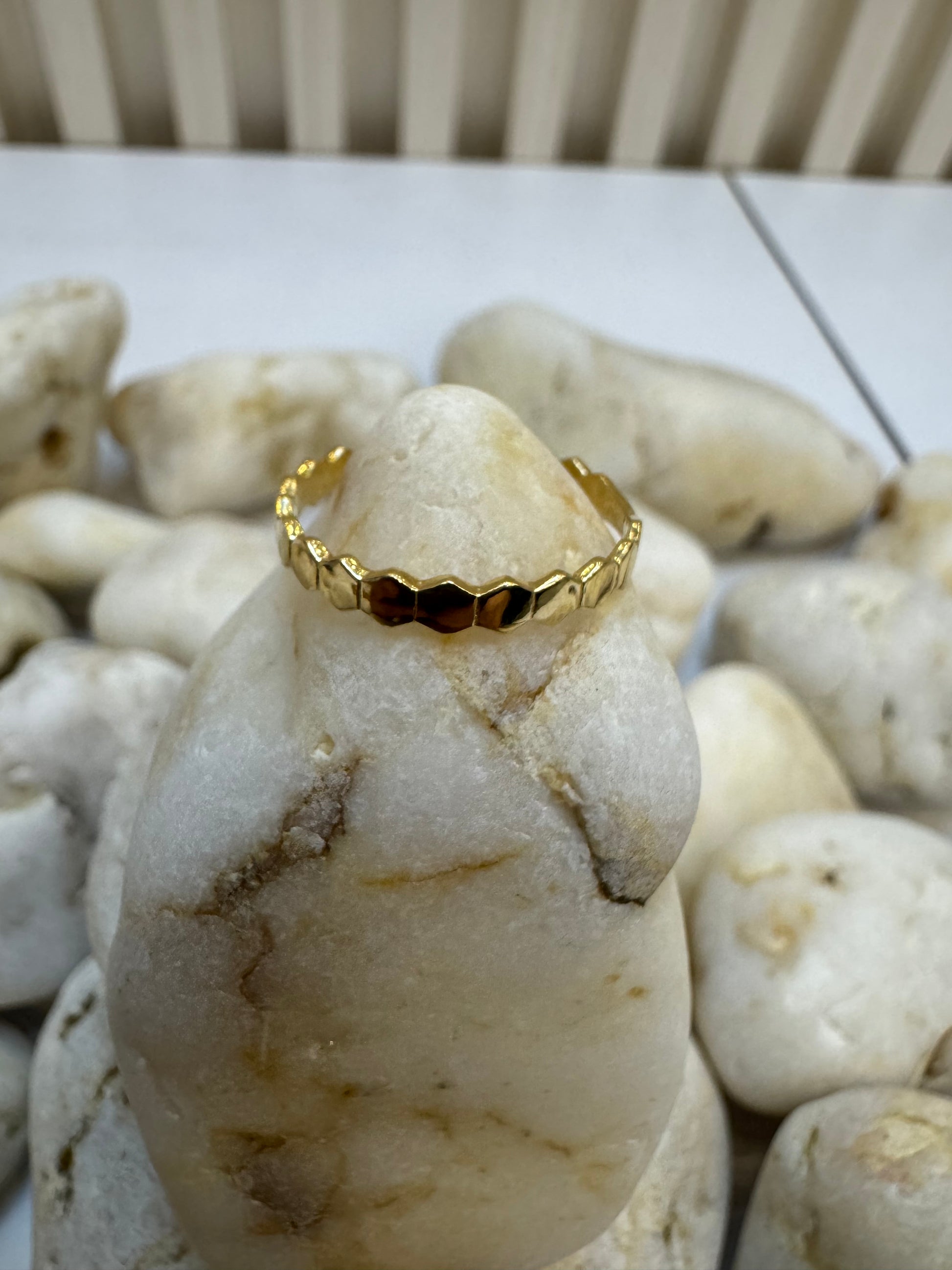 "Con nuestro anillo Nido d'ape, tienes una pieza única y elegante con forma de panal de abejas. Su diseño chic te hará destacar, mientras muestras tu amor por la naturaleza. ¡Añade un toque de originalidad a tu estilo!"