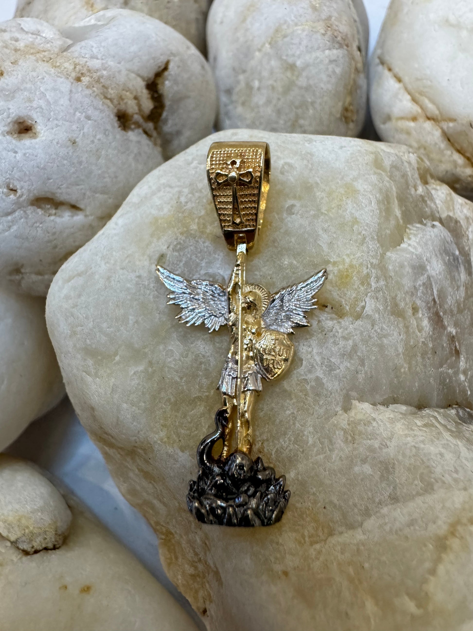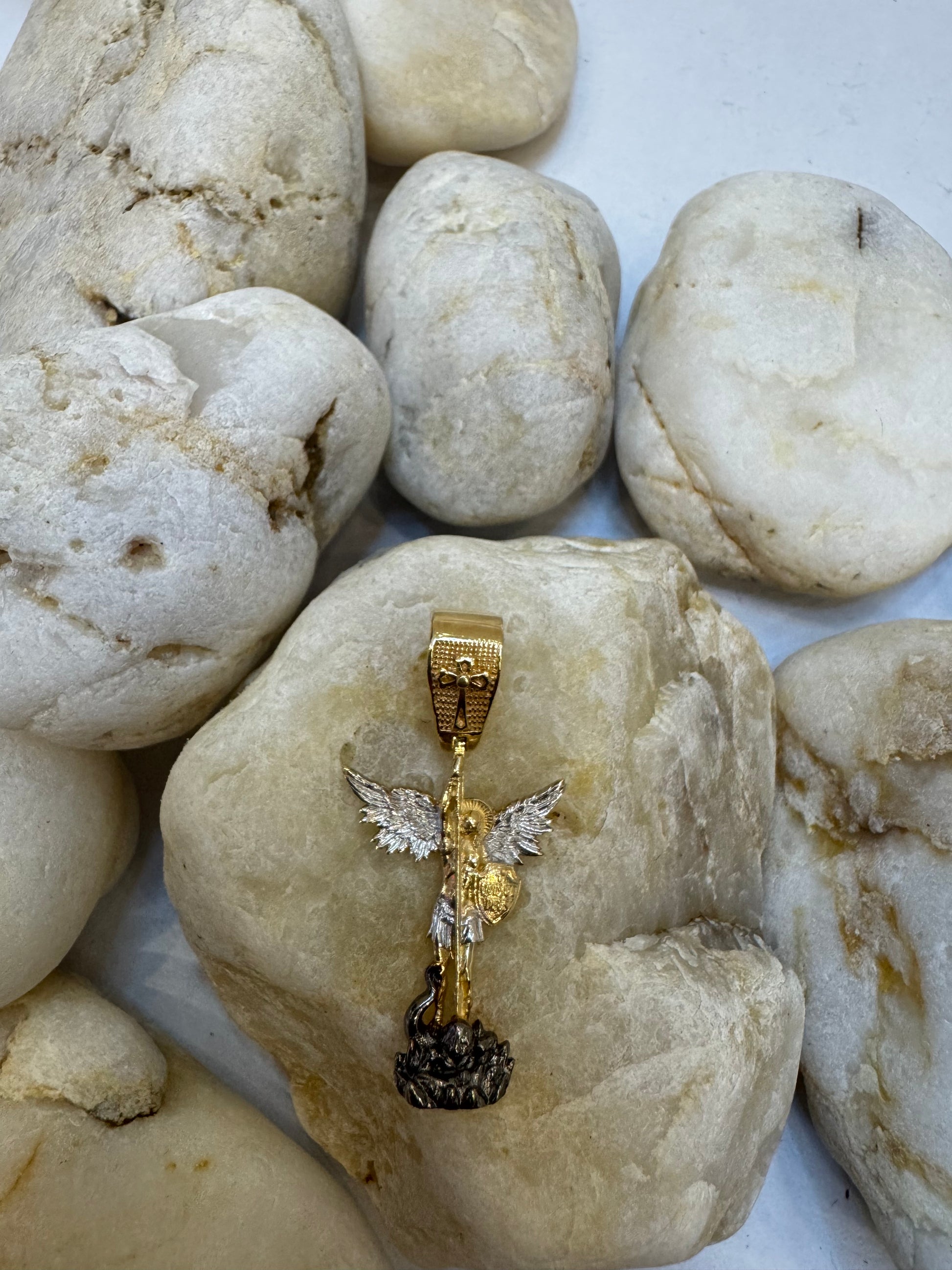 El dije de San Miguel Arcángel es hermoso y representativo de la devoción a este poderoso arcángel. Elaborado en oro 18 quilates con detalles cuidadosamente elaborados, este dije es una forma elegante de llevar a San Miguel con nosotros en todo momento. Una pieza perfecta para cualquier persona que busque protección y guía divina.